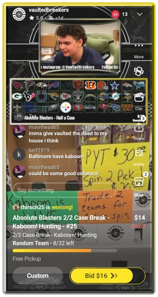 Pay the price listed in the Live Break and choose your team. Any team can hit, but some chase the MVP's and big players for the return and excitement.